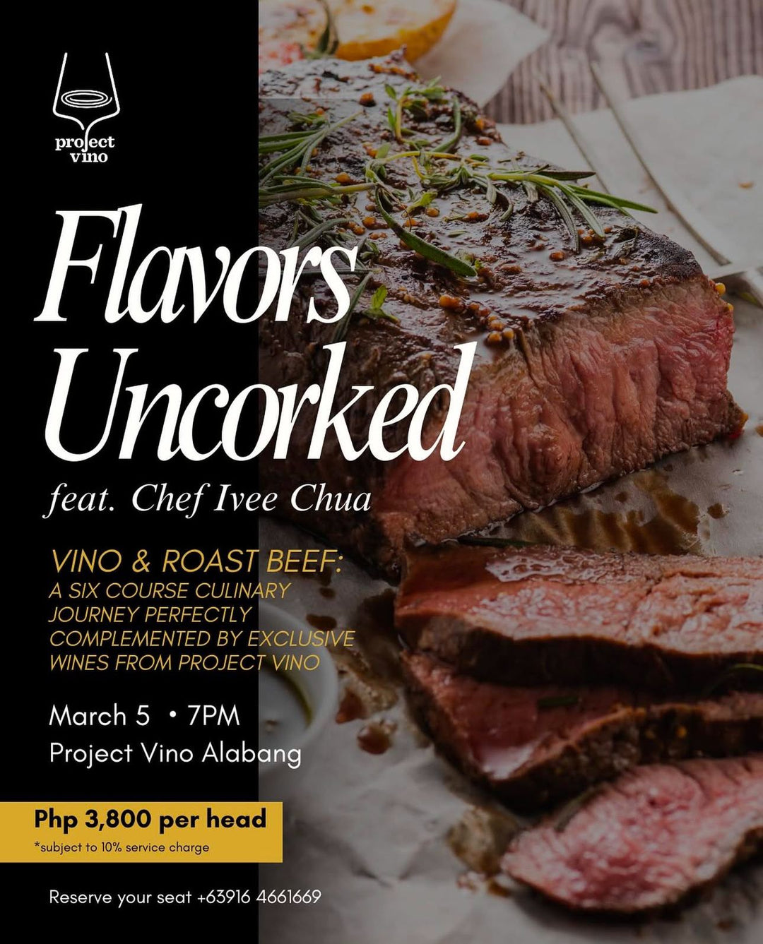 Project Vino Alabang plays host to the incomparable Chef Ivee Chua. Join us on March 5, Tuesday at 7 PM for a night of Vino & Roast Beef. Dive into our carefully crafted wine and dinner menu and have a feast for only Php 3,800/head.